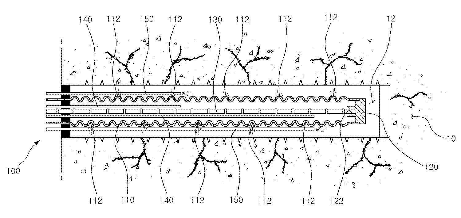 Çü¼ºµÈ ÇÕ¼º¼öÁöÀçÀÇ ÁÖ¸§°ü°ú ÀÌÇüö±ÙÀ¸·Î ÀÌ·ç¾îÁø ±¸Á¶ÀÇ º¸°À縦 Áö¹ÝÀÇ Ãµ°øÈ¦¿¡ »ðÀÔ ¼³Ä¡ÇÏ¿© ±×¶ó¿ìÆ®¸¦ ¾Ð·Â ÁÖÀÔÇÔÀ¸·Î½á