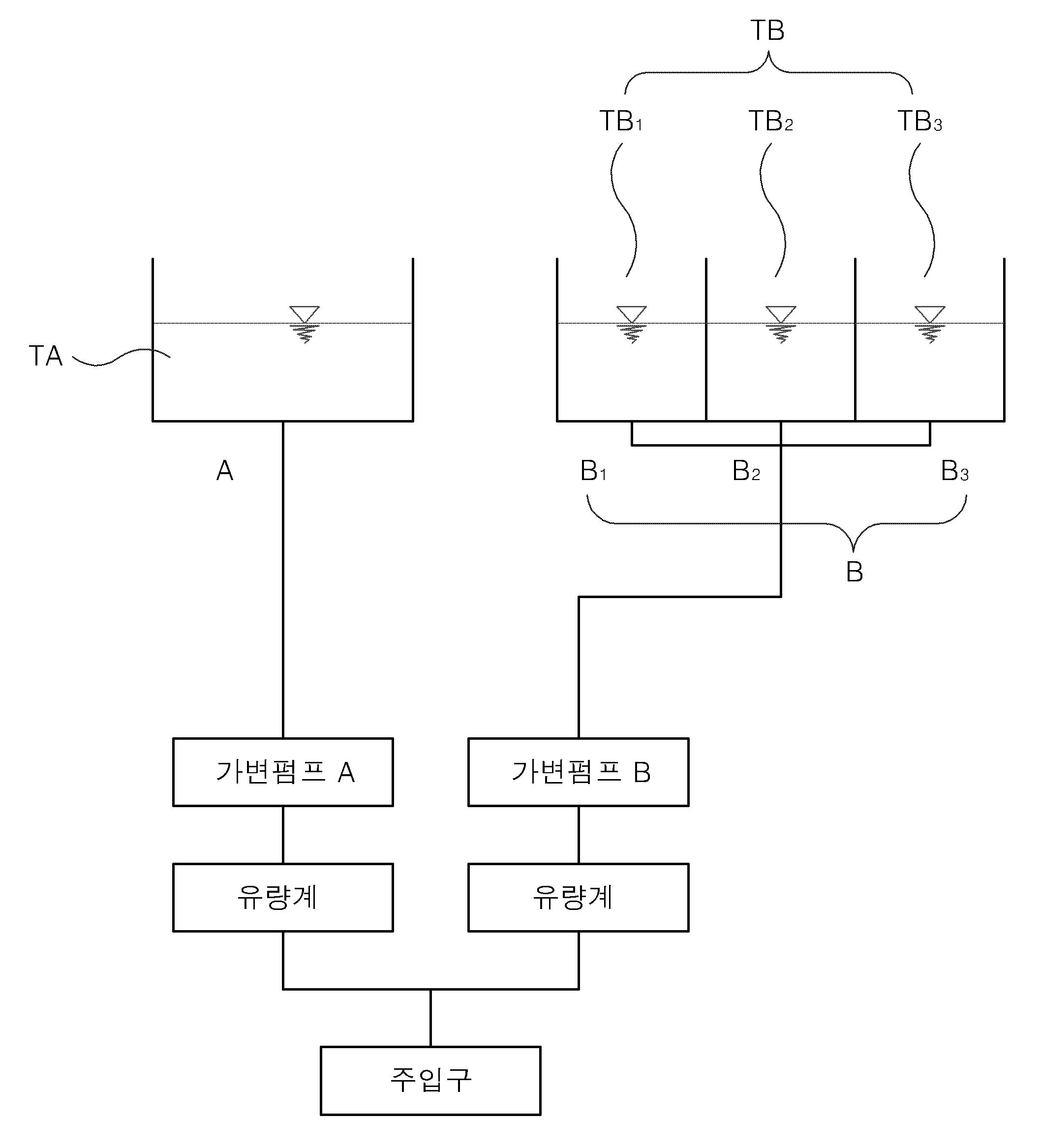 1:1, 1:2, 1:3À¸·Î ±¸¼ºÇϰųª, B¾×À» B3¾×À¸·Î Çϸç 2:1, 1:1·Î ºñÀ² Á¶ÀýÇϰí, 1Â÷ ÁÖÀÔ¿¡¼ A¾×°ú B3¾×ÀÇ